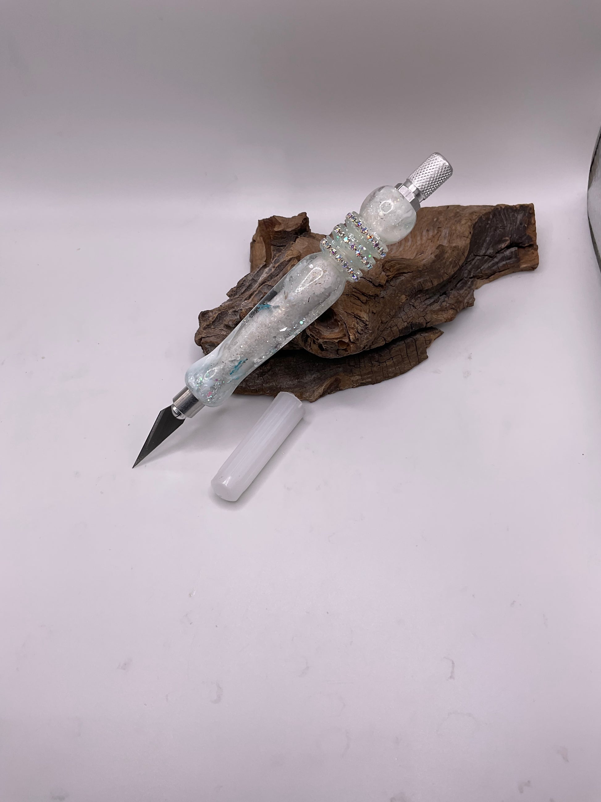 This was made using a tube down the middle of the hobby knife. If you look closely you can see the tube.